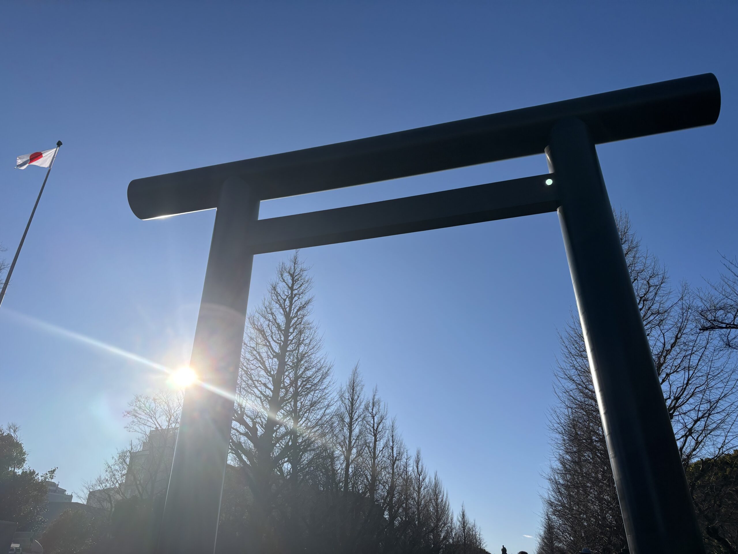そして、九段下駅で下車し、「靖国神社 大鳥居」をくぐって「靖国神社」で参拝しました。3日なのでまだ多くの参拝客が列をなしており、我々も4、50分は並んだでしょうか。前日に雪が降った影響か、拝殿の屋根の庇から雪が滑り落ちていて、あれが私たちの上に降ってこないか、もし降ってきたら新年からついていると思いながら参拝しました。残念ながら私たちの上に雪が落ちてくることはなかったのですが。